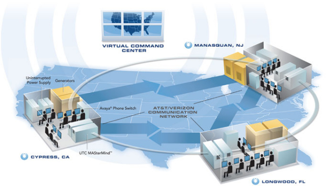 - Our monitoring centers are interconnected. This allows us to load balance by redistributing operator resources during spikes in alarm activity.